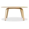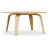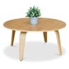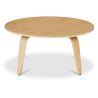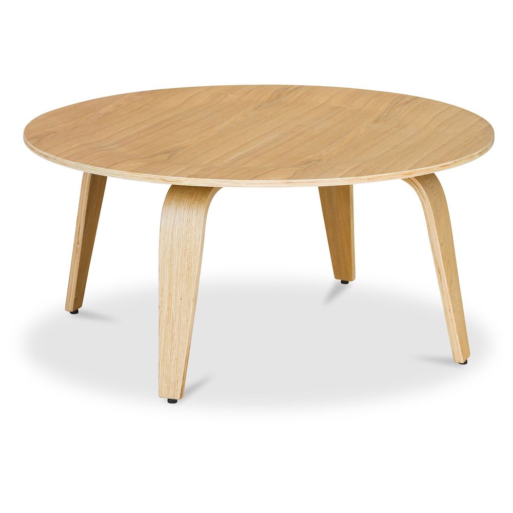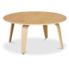Tavolino da caffè in legno compensato é un semplice tavolo tondo, leggermente rialzato sull'esterno e fatto interamente di noce.