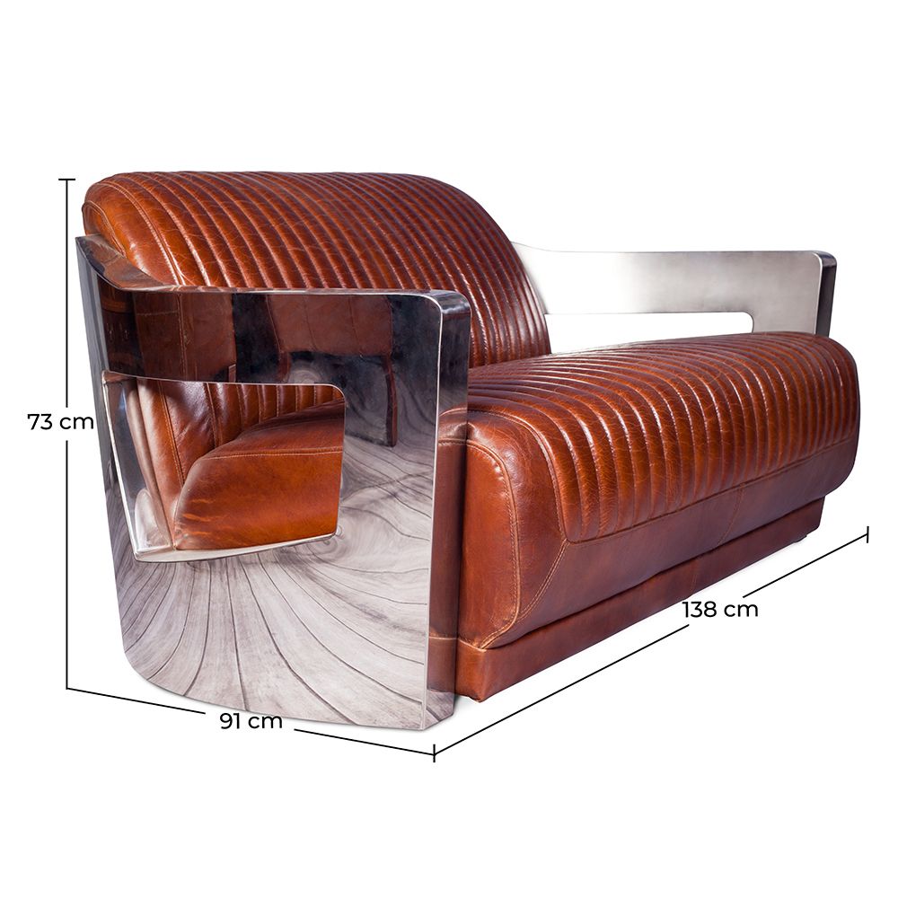 Questo Divano di Design 2 posti della collezione Churchill Lounge è la risposta a tutti i tuoi bisogni. Il rivestimento in pelle marrone, simbolo di eleganza, posa su una struttura in compensato. I braccioli sono posti invece su una struttura di acciaio inossidabile, direttamente uniti alla base per una maggiore stabilità. La combinazione di questi due materiali crea un’estetica unica, un mix di bellezza e robustezza.