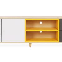 Questo mobile TV nordico è realizzato in legno MDF ad alta densità, le gambe sono in legno massiccio, quindi sono molto stabili e resistenti. Grazie ai molteplici scomparti presenti in questo mobiletto televisivo scandinavo puoi tenere tutti i tuoi dispositivi audiovisivi nello stesso posto.