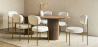 Invita un'aria di distinzione ed eleganza nei tuoi spazi con la nostra sedia da pranzo tappezzata in tessuto bouclé, il cui fascino si integra perfettamente con una struttura metallica dal tono dorato. Progettata per creare un'atmosfera di opulenza in hotel e ristoranti prestigiosi, oltre che per aggiungere un tocco di lusso all'ambiente domestico, questa sedia è un testamento di stile e comfort incomparabili. Il morbido e magistralmente tessuto bouclé avvolge con grazia sia la seduta che lo schienale della sedia, offrendo un'eccezionale esperienza di seduta. La struttura metallica dorata non solo aggiunge un tocco di lusso, ma assicura anche la solidità e la durata della sedia, rendendola ideale per un utilizzo costante in ambienti ad alto traffico.