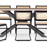 Se state cercando un set tavolo da pranzo e sedie coordinate, v'innamorerete sicuramente di questo. Il tavolo, lungo 200 cm, offre il posto a 8 persone. È robusto e solido, con una superficie ampia, in legno naturale e i piedi in metallo. Vi piacerà l'elegante stile industriale. Le sedie, invece, sono fatte in rattan naturale e hanno un design a rete cannage boho chic, fresco e moderno. È una combinazione funzionale, pratica e di classe che, sicuramente, soddisfa ogni vostra esigenza.