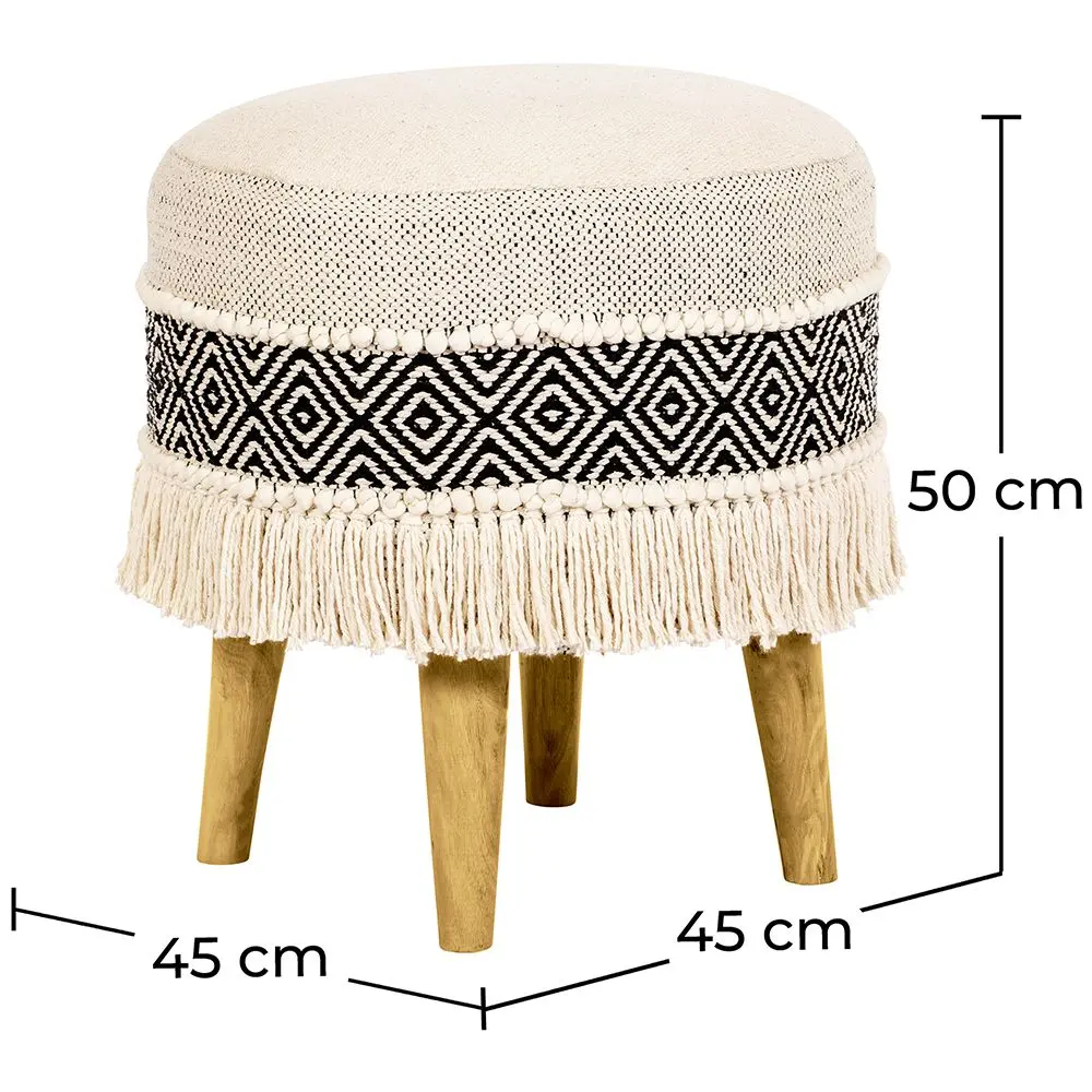 Sgabello Imbottito Stile Boho Bali in Legno - Rivestimento di Cotone - Joan Bali
