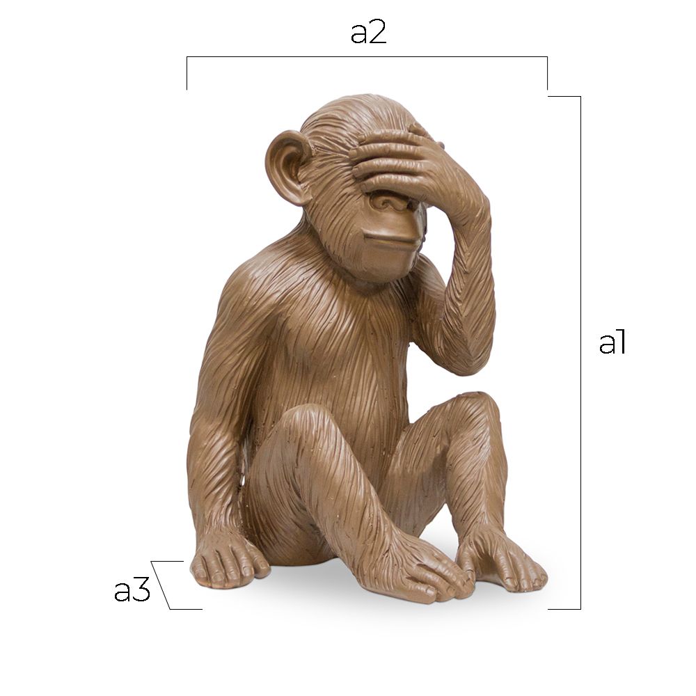 La nostra scultura rappresenta la scimmietta saggia che non vede, infatti ha gli occhi tappati. È fatta di resina e dipinta in colore marrone vintage. Si tratta di una scultura originale alta 40 cm, che potrai poggiare su una mensola o in una libreria.